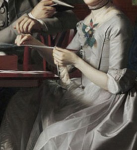 But best of all perhaps is this image, of Thomas Mifflin and his wife, Sarah Morris Mifflin, painted by Copley in 1773. Thomas Mifflin (1744-1800) and his wife, Sarah Morris Mifflin (1747?-1790), were the only Philadelphians painted by John Singleton Copley. Mifflin was an ardent patriot and by the time this portrait was made, had established himself as a successful merchant; later he rose to the rank of major general in the Continental Army, and was elected the first governor of Pennsylvania after the United States achieved independence.