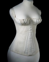 Know what you mean about SITTING DOWN in the stays! For me the problem was solved in making sure I hadn’t made them too long-waisted, so the contraption didn’t ride up under the arms or, horror of horrors, RIDE UP off the shoulders completely, if it had straps!