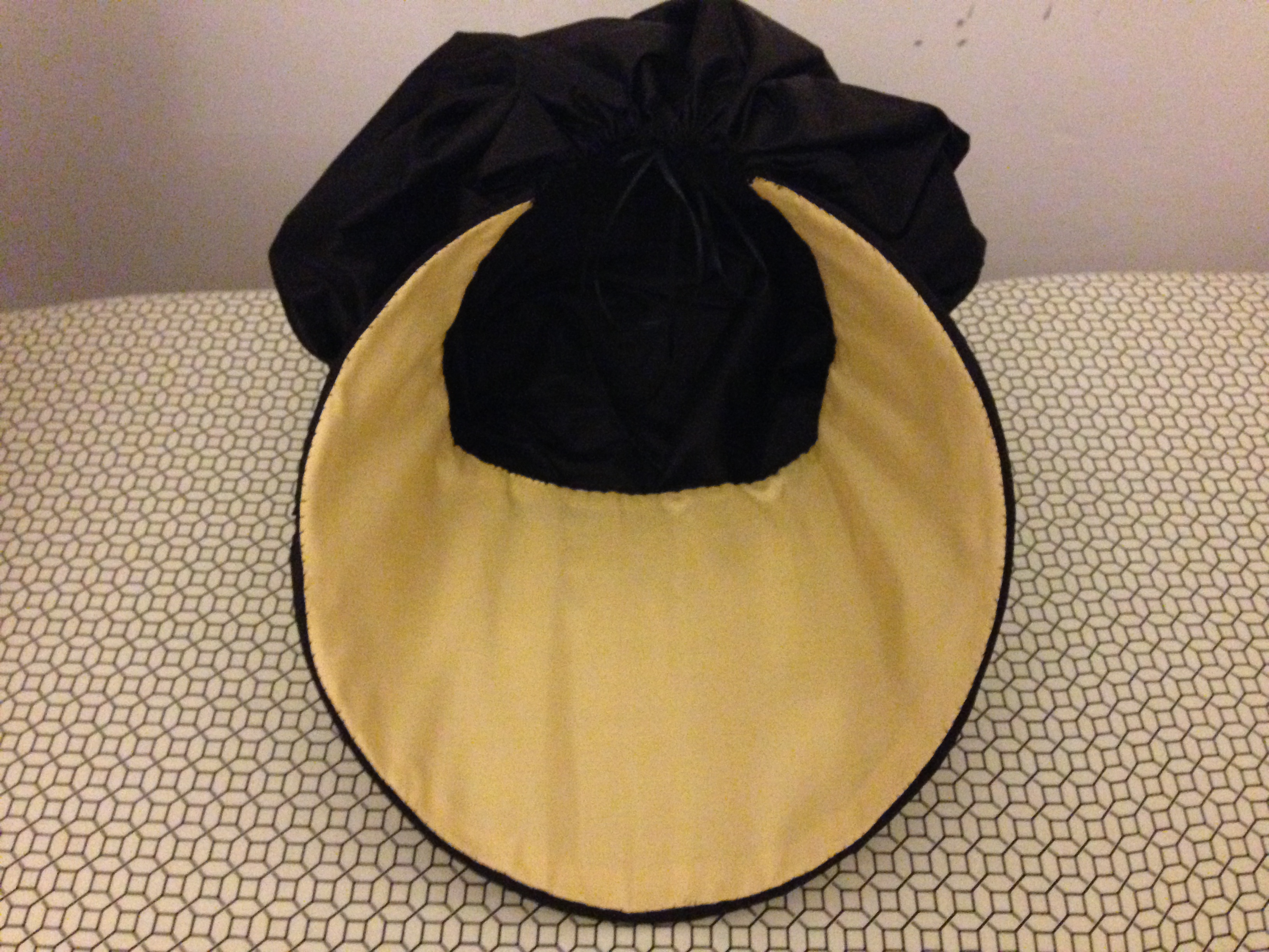 What would I do differently? Next time I would definitely play with the brim shape using a paper template. I’d like a lower, curvier, brim. Once I had the shape worked out in paper, I would use that as a template to cut the taffeta and horsehair or light buckram layers.