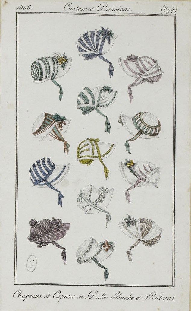 Frivolous Friday: Checkin’ it Out 29 Friday Jan 2016 Original size at 634 × 1031 ≈ Leave a comment Costume Parisien 1808 Chapeaux et Capotes en Paille Blanche et Rubans