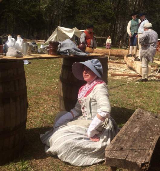 It was a simple set up: two barrels, a board, my frail, and me. (I could really use a wheelbarrow, and a rain deck. At least the rain deck is something I can make myself.) But this was more than adequate to sell luxury goods (rum, whiskey, radishes, and ginger candy) to the soldiers at Fort Dobbs.