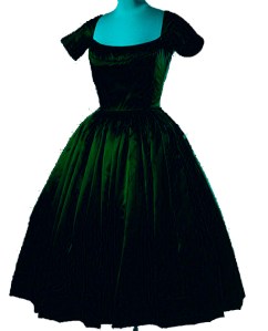 Square neck, tight waist, full skirt, side zip: at one point, I was skinny enough to pull it over my head without opening the zipper, as long as I wiggled just right. The only time I clearly remember wearing the Green Taffeta Party Dress was to the KWUR Student Radio end-of-year party at the Women’s Building on the Washington University Campus. April or May of 1987, probably, though possibly 1986, before I went to Skowhegan on a summer scholarship.
