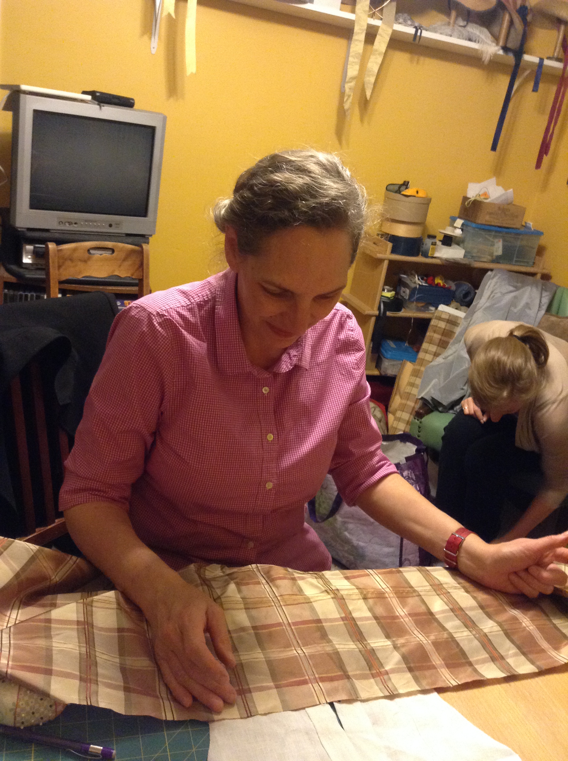 And while I planned to make panniers AKA pocket hoops, a simpler and easier solution occurred to me. Hip pads: I’d seen them on Sharon’s site and thought I could at least try a pair. They’d help my poor fake quilted petticoat (FQP, long story[2]), which will come in handy for a party in February. So I spent my New Year’s Day making hips and playing a bit with the sacque silk.