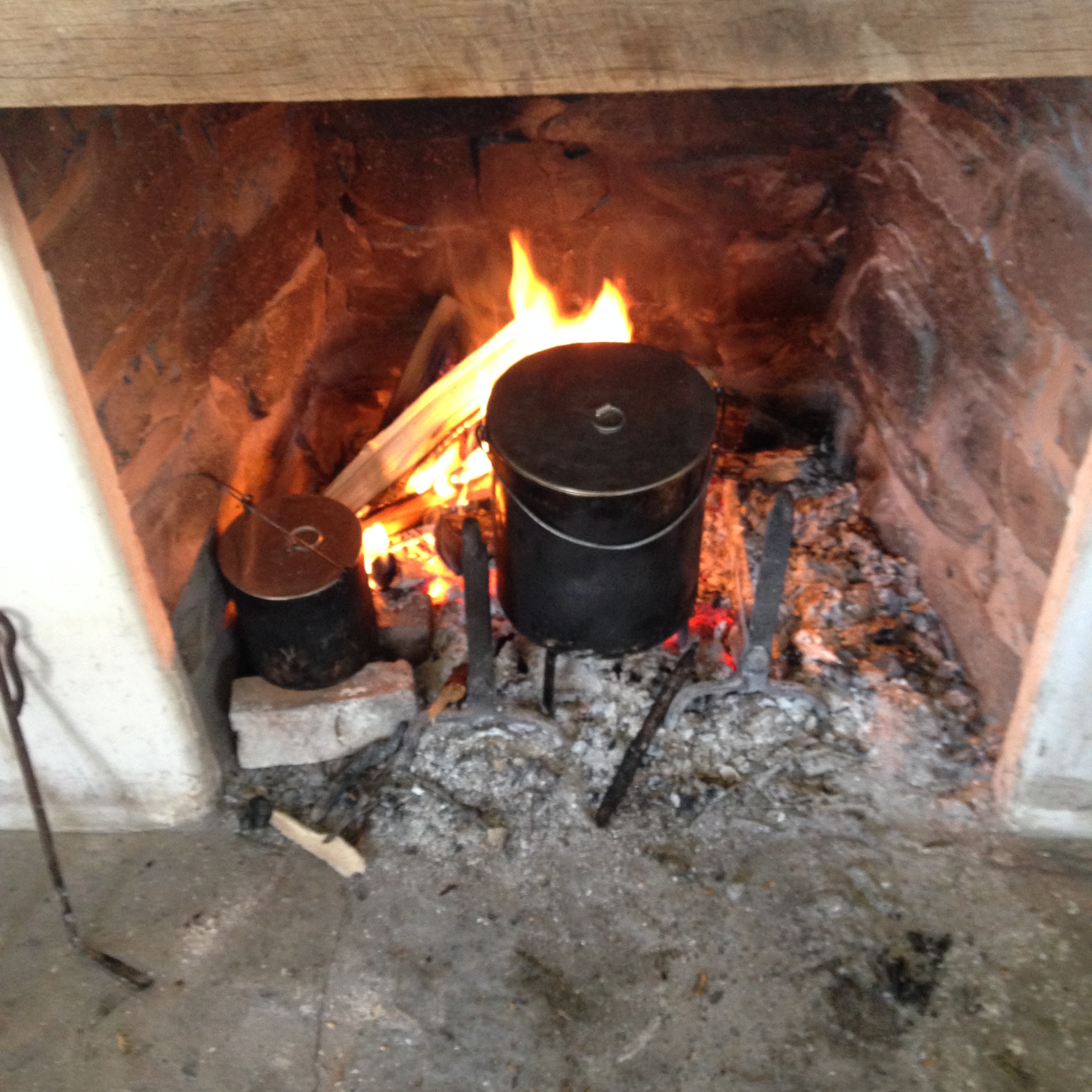 That went well enough, but I got distracted along the way by the excitement in the house, and added the correct ingredients in the wrong order. I don’t think it mattered. Water, black tea, lemon juice, and a bottle of Smith & Cross rum all went in to the redware pitcher and wafted up the back stairs, giving the servants’ quarters a festive ambience.