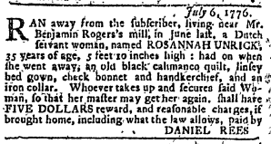 Maryland Journal, August 21, 1776. I love this one because Rosannah is as tall as I am!