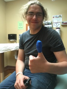 Parking lot selfie, with sweat, curls, and feathers. I like the way the feathers contrast with the curls.