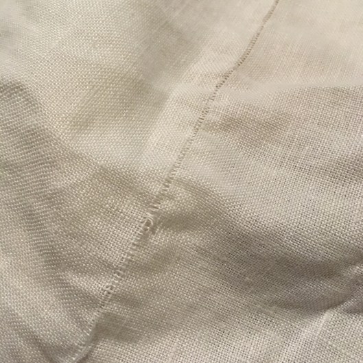 The date of the notes (42 years ago?) concerned me, and I wondered about the french seams. Most of what we see in the period are felled seams, so it seemed possible there was some confusion about the terminology. I’m confused about it after looking at tutorials and descriptions online, but perhaps that’s just me– in any case, the only way to answer this was to go and look.