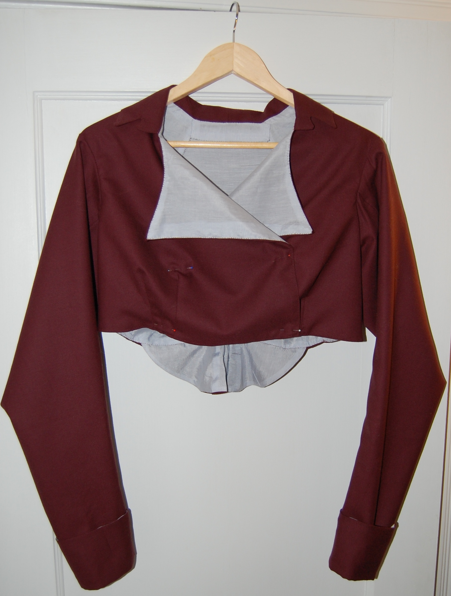 Once the gown is fully dressed on a mannequin (that is, over a shift and petticoat), I know it will assume the more correct shape of the green gown at the V&A– it looks better even on me, although it is too small, being made for a mannequin representing an 18th century woman.
