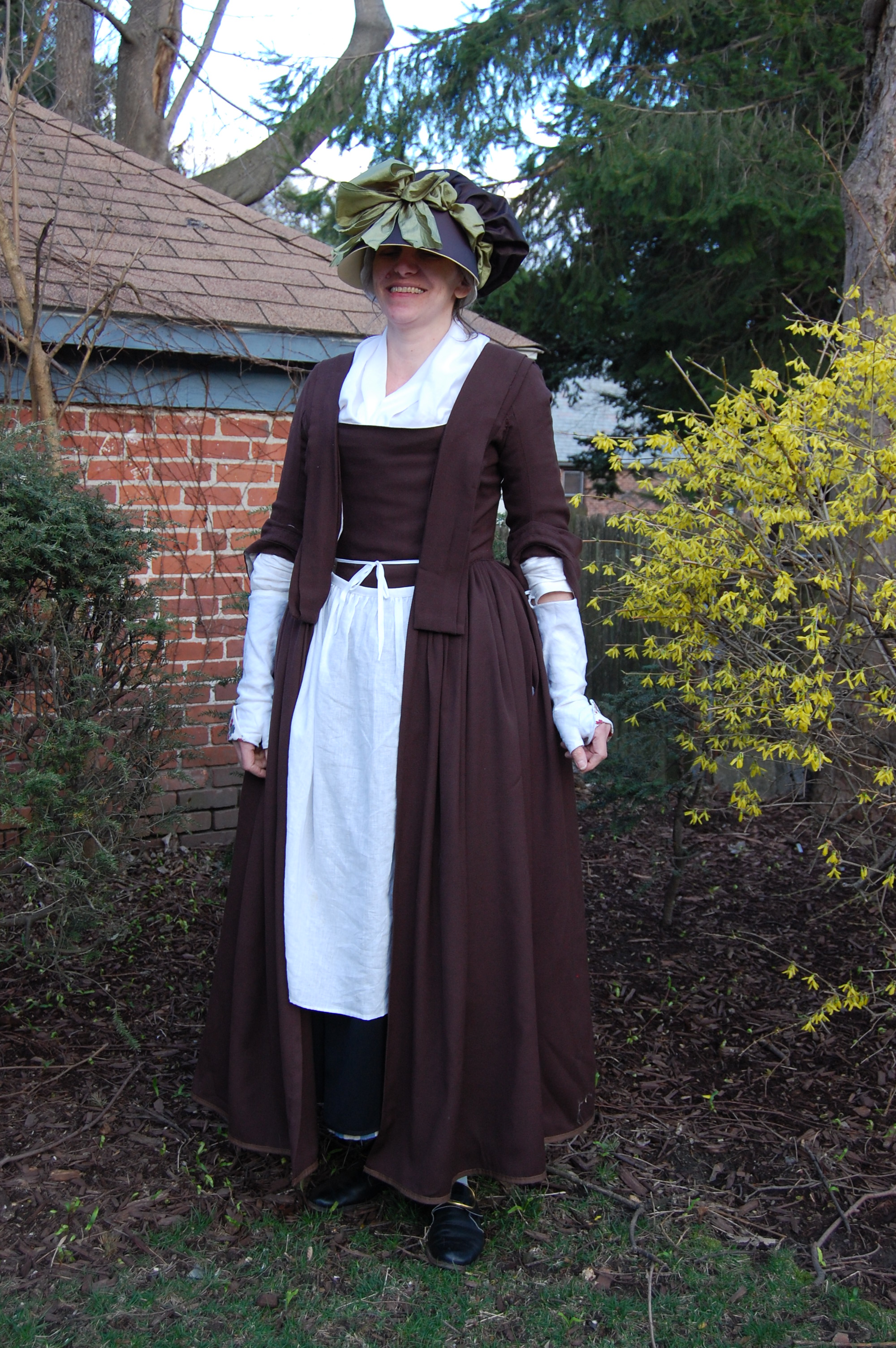 Afterwards, we had lunch, and saw more friends. That gown is a copy of one in the Newport Historical Society. It has robings and front lacing–what an amazing artifact! I would love to get my fingers on the original’s front to find out how many layers there are.