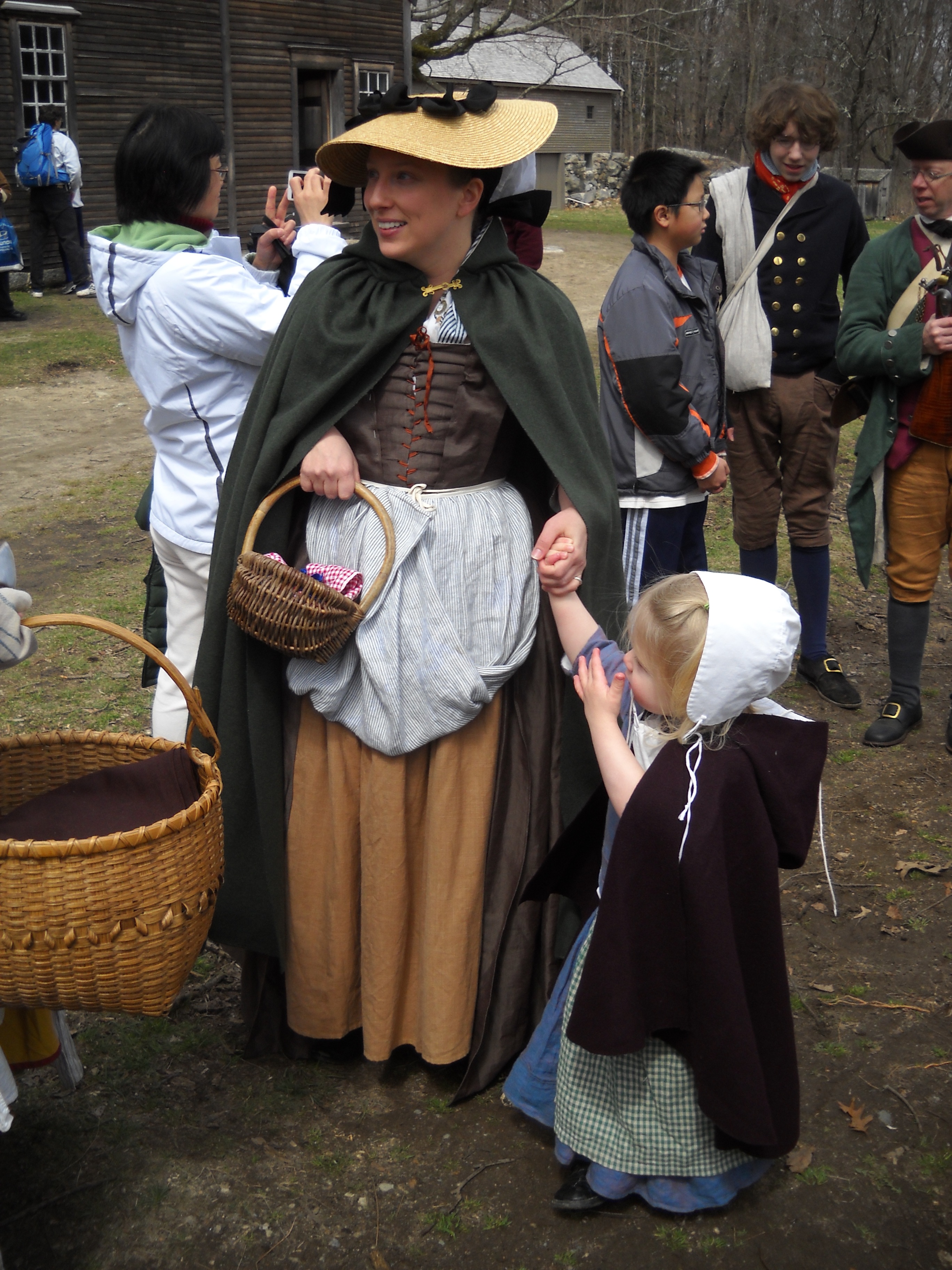 I had a moment at Tower Park where I thought, Really, the hell with the public. This kind of reenacting is not for me; I’ll stick to something more personal, something for reenactors/living historians alone. But what I think I really wanted was a friend or a larger zone of personal space–you’d think petticoats and a cloak would help, but they don’t–a way for people to understand No Touching. Also, I like to be able to keep My Kid in view to manage my anxiety levels. Superstitious Mother Tricks…