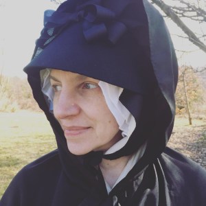 Wash your body linen. Please. Shirts, shifts, neck handkerchiefs, rollers: wash them. And your caps! They washed them, and so can you. I prefer to wash before I mend, but I hand wash my linens. We have a large kitchen sink that I can plug, so I fill it with hot water and wash my aprons, shifts, and stockings with lye soap. (I like that it does not smell like modern detergents; Drunk Tailor bought a lot of it for making white ball so we might as well use it.) Whenever possible, I hang my clothes to dry outside, preferably on a sunny day. You may also choose to spread your things out on the grass (if you have it); this helps whiten linens. We lack grass, or a clothesline, in our yard so it’s hangers in the trees or on the shower curtain rod for me. There’s no shame in that– it’s just not as picturesque. If you want to know more about laundry, Madam Johnson obliges.
